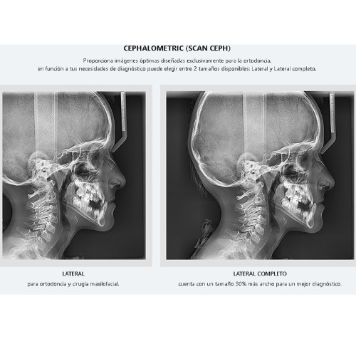 Tres tamaños de Ceph reducen la dosis de radiación y exploran el área ideal de la anatomía craneal.