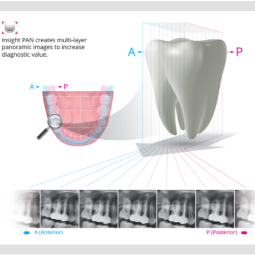 Debido a que cada paciente puede tener un arco ligeramente diferente, las imágenes de panorámicas convencionales ocasionalmente pueden perder detalles importantes que salen de una sola capa focal.